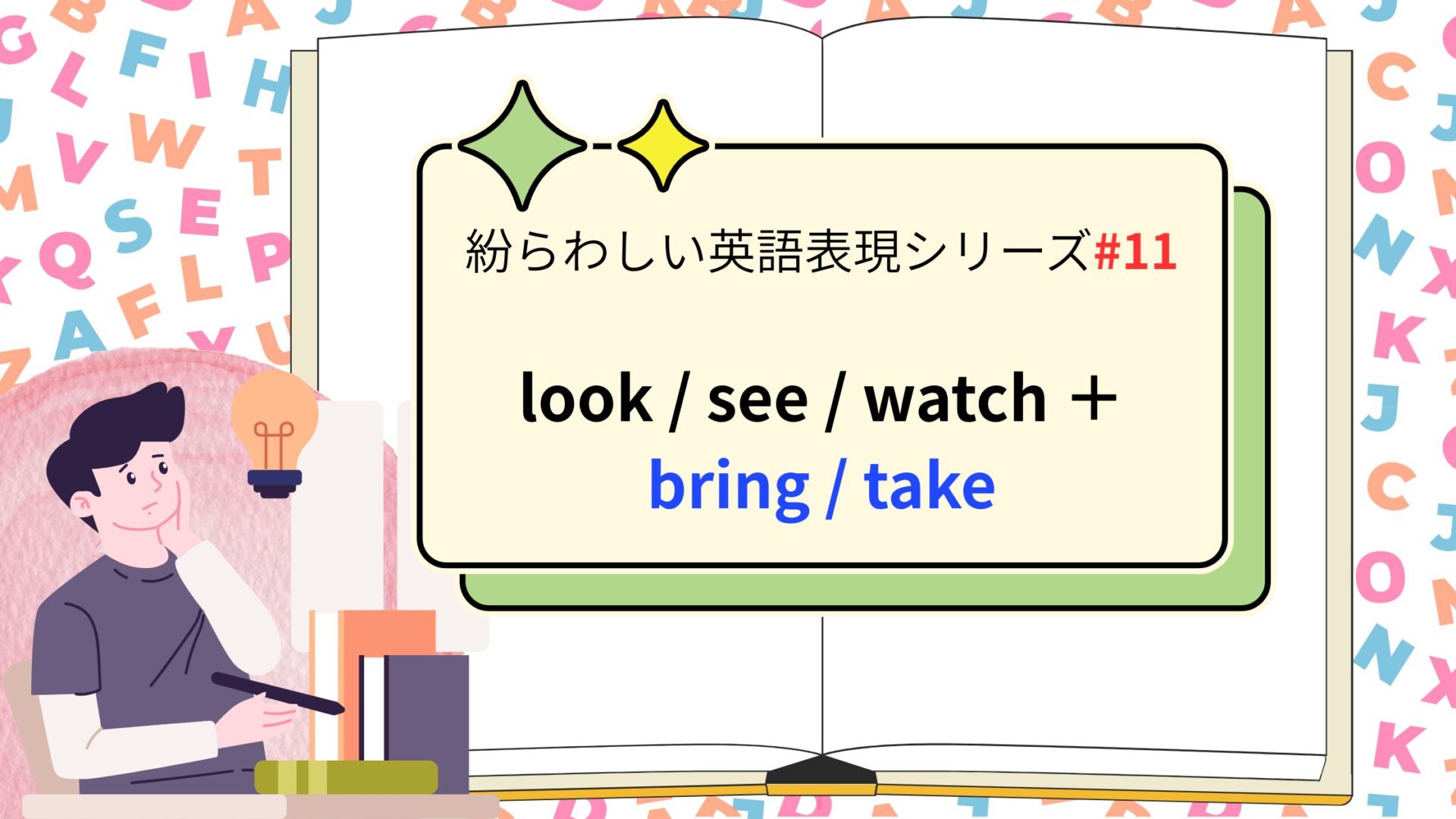 「見る」と「持っていく/持ってくる」は日本語では一語にまとまることが多く、英語では使い分けが必須です。会話で迷わないように整理しましょう。
