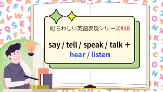 発音・文法トレーニング 紛らわしい英語表現シリーズ10|say / tell / speak / talk + hear / listen 【使い分け】say / tell / speak / talk + hear / listen を3分で整理「言う」「話す」「聞く」は日本語に訳すと似ていますが、英語では使い分けが必要です。会話でも試験でも頻出の違いを整理しましょう。1) ... 2025.09.28 発音・文法トレーニング