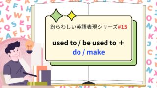 発音・文法トレーニング 紛らわしい英語表現シリーズ15|used to / be used to + do / make 【使い分け】used to / be used to + do / make を3分で整理 「以前は〜していた」「〜に慣れている」と「〜する/〜を作る」。意味が似ているようで使い方が全く異なる表現をまとめます。 1) used to / b... 2025.10.01 発音・文法トレーニング