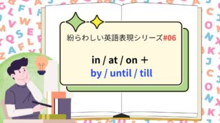 発音・文法トレーニング 紛らわしい英語表現シリーズ06|in / at / on + by / until / till 【使い分け】in / at / on + by / until / till を3分で整理「場所や時間を表す in / at / on」と「期限や継続を表す by / until / till」。混乱しやすい基本前置詞を整理します。1) i... 2025.09.26 発音・文法トレーニング